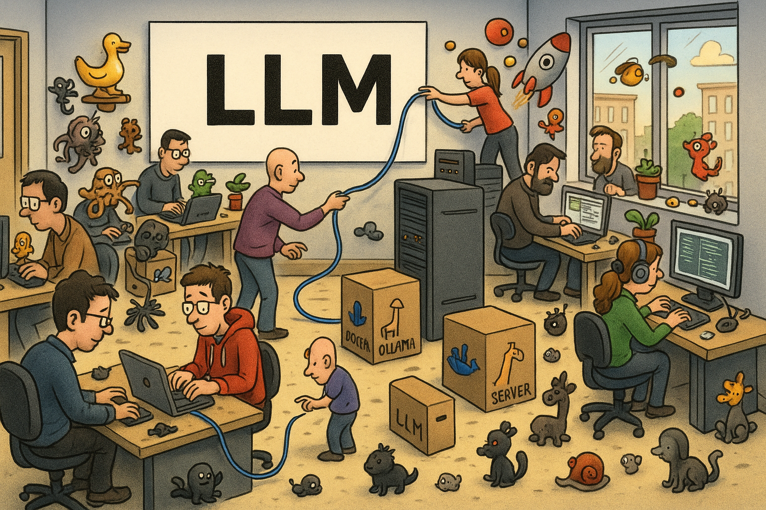 最近在研究提供給內網使用的LLM,因為已經在本機玩過Ollama還蠻容易上手,量化模型也做得不錯(沒有GPU也可以跑Gemma1B,但記憶體要夠大)。