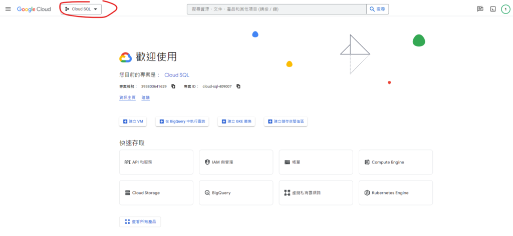 2. 可以建立新專案或使用已存在的專案來建立Google Cloud SQL實體,以下是另外建立一個名稱為 Cloud SQL的新專案