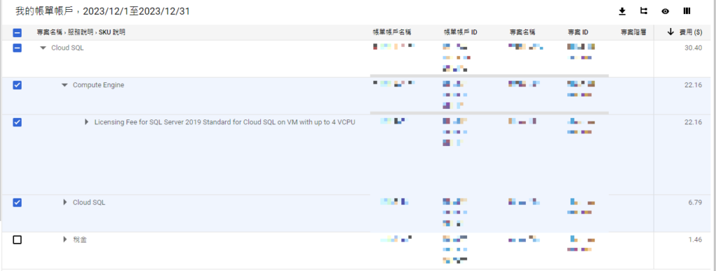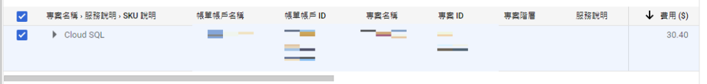 依照原文建置的Cloud SQL費用其實不太便宜,總費用是30.40美元